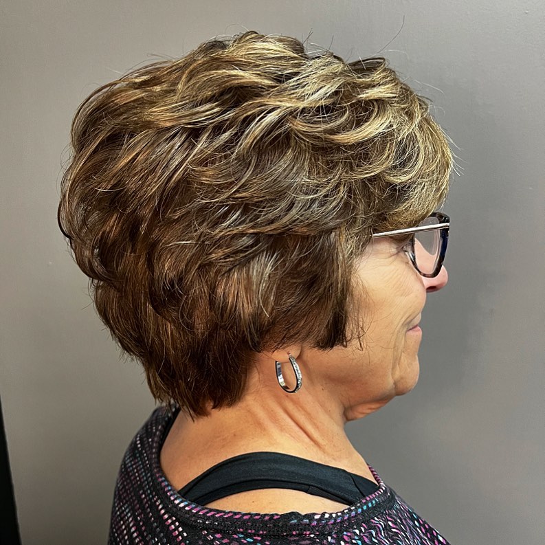 Layers are a surefire way to add an air of youth to any hairstyle. For older ladies, a cropped bob with flowy layers is an ideal option that is easy to manage. For those blonde women out there, add in some highlights for a little extra dimension.